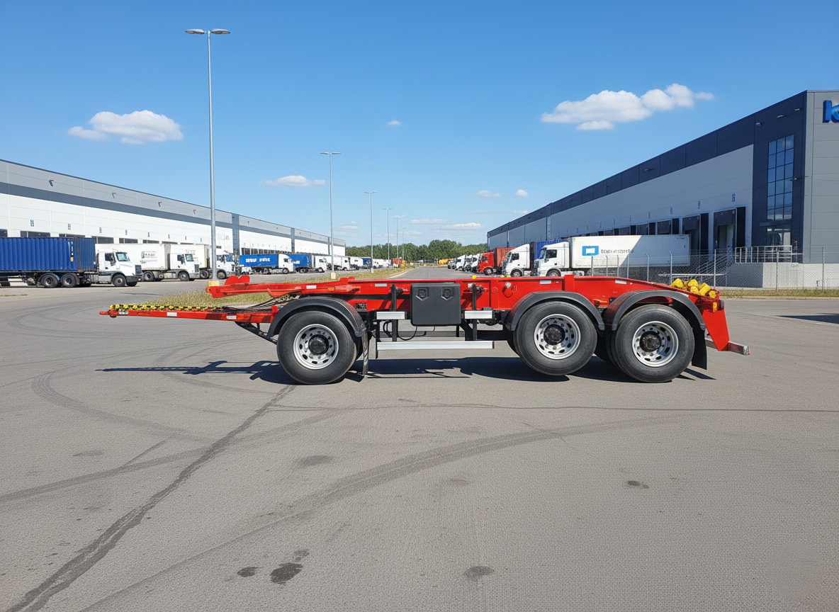 Reboque Julieta, modelo 03 (Tres) eixos, PBT homologado de 20.000 à 27.000kg, sistema de carrinho para transportes de container Roll-on Roll-off, fabricada em chapa de aço carbono conforme norma SAE 1010/20, eixo dianteiro construído e maço especial SAE 1045, eixo traseiro construído em aço SAE 1045, suspensão traseira confeccionada em chapas de aço, obedecendo as normas de segurança, feixe de molas de 90mm, pára-choque atendendo as normas de segurança veicular, sistema de freios com ABS, e estacionários e sistema de trava de segurança pneumática, sem pneus, fundo primer anti-corrosivo e pintura acabamento em PU (poliuretano), na cor padrão do cliente, rodas para pneus com ou sem câmara, engate rápido nas mangueiras, com protetor lateral retrátil, conforme RESOLUÇÃO CONTRAN 323/09, kit de sinalizadores laterais em led conforme RESOLUÇÃO CONTRAN 227/07, lanternas traseiras com pisca sequencial, suporte para estepe, caixa de ferramenta, com corote d’água.